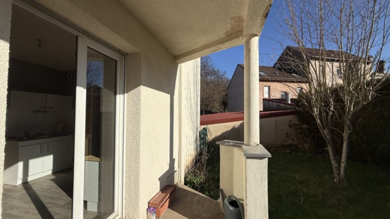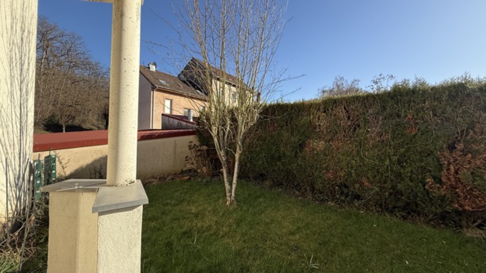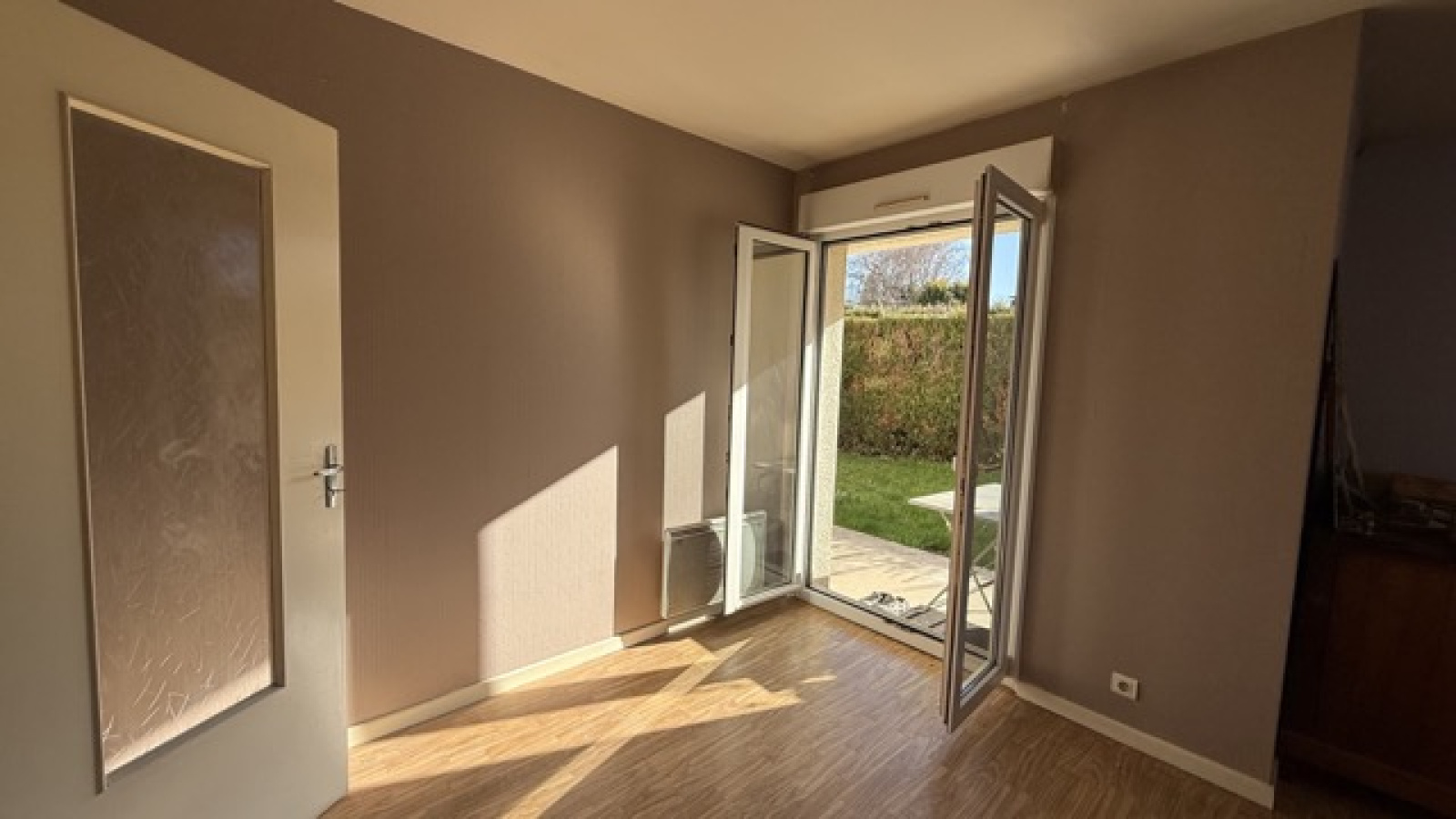 La terrasse ouvre sur un jardin privatif ensoleillé et confidentiel, au calme.